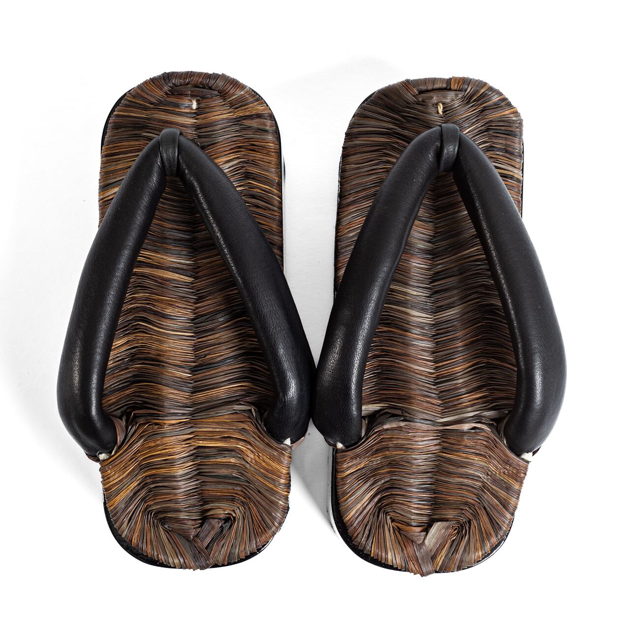 "Thick-soled geta" with a thickness of 8 to 10 cm. Inspired by modern thick-soled platform shoes, these Japanese wooden ‘geta’ shoes are a great fit for young people. Made from paulownia wood with holes inside, they are far lighter than they appear. This special edition is a collaboration between the two unique Tochigi-based traditional crafts of Nikko Geta and Kanuma Kumiko (wooden paneling), since each hole in the sandals is filled with wooden panels. A version is also available without any holes inside the sandals.